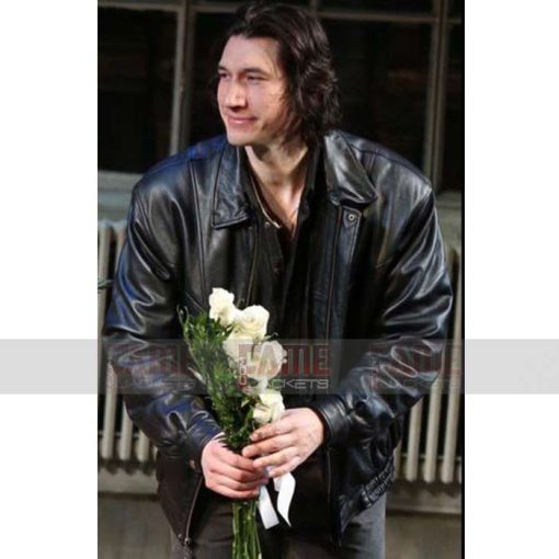 Adam Driver Casual Black Leather Bomber Jacket For Men