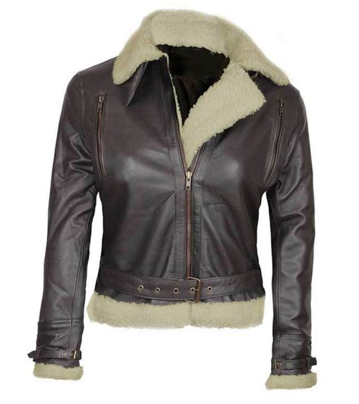 1 review for Aviator Dark Brown Leather Shearling Jacket Women