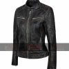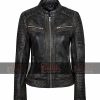 Black Cafe Racer Biker Jacket Of Women In Real Sheep Leather