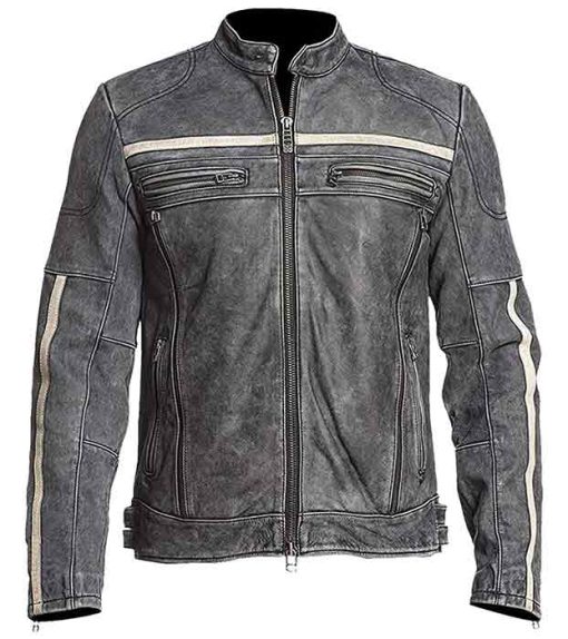 Cafe Racer Vintage Retro Moto Grey Distressed Leather Jacket At $90 Off Sale Price
