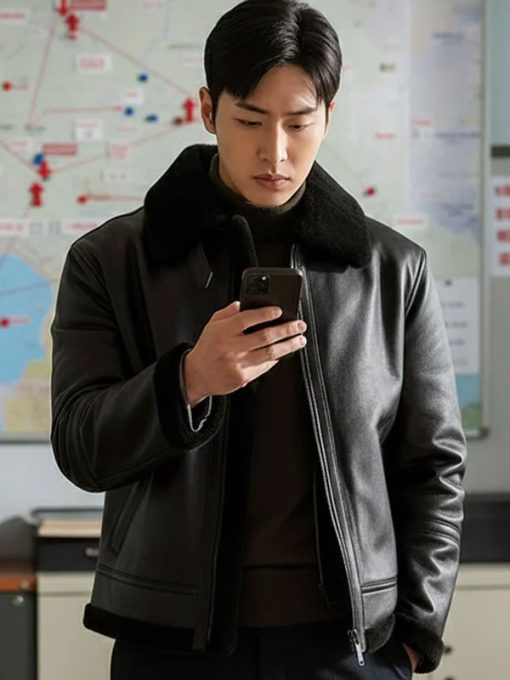 Cha Soo-yeol Queen Mantis SO1 Black Shearling Jacket