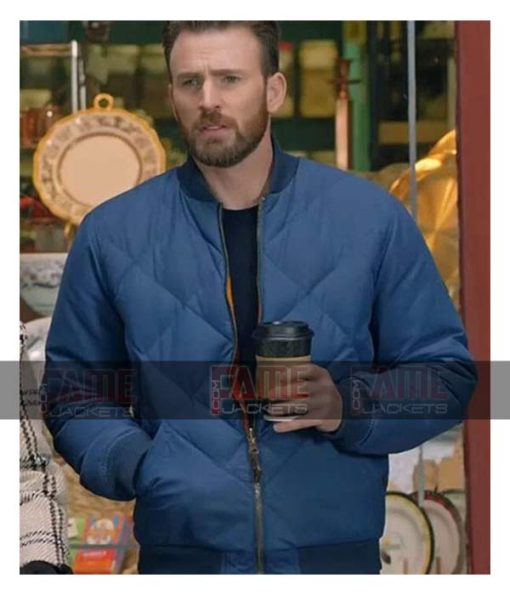 Get Chris Evans Captain America Men’s Blue Quilted Bomber Jacket