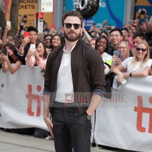 This Chris Evans lightweight cotton jacket is available at our store famejackets on sale price. It has worn by famous American actor Chris Evans at Latest Movie Knives out Premiere at Tiff.