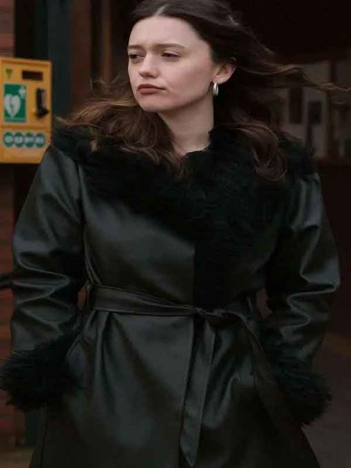 Daddy Issues S02 Aimee Lou Wood Black Leather Coat