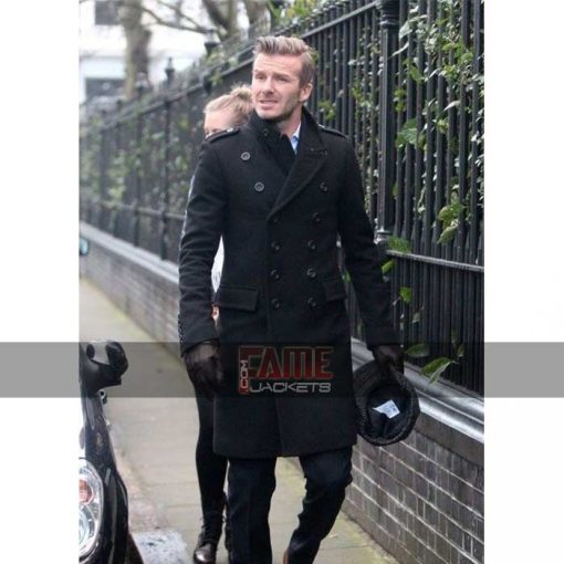 David Beckham, a well-known football player, donned a black wool double-breasted winter coat. He has won league championships in four nations: England, Spain, the United States, and France. He is a well-known professional football player and the current president of Inter Miami CF. In addition, he retired from football in 2013 after 20 years of play and 19 major championships.