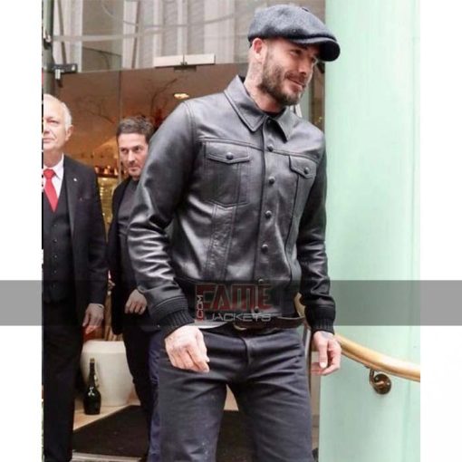 David Beckham Vintage Style Black Leather Jacket For Men On Sale Price