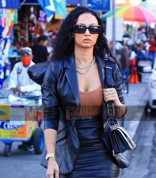 Draya Michele Real Black Leather Slim Fit Blazer For Women On Sale
