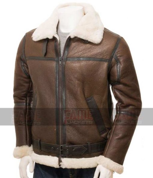 Mens Flight Jacket In Real Cowhide Leather With Faux Fur