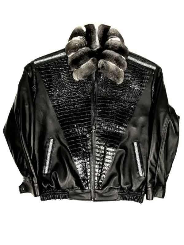 Frank Sheepskin Black Jacket With Chinchilla Collar