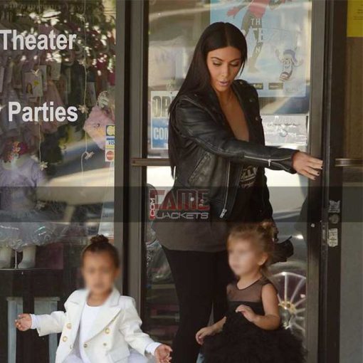 Buy Kim Kardashian Black Leather Slim Fit Motorcycle Jacket On Sale.