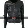 Get Women’s Black Slim Fit Collarless Leather Jacket at $99 With Free Shipping