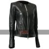 Ladies Casual Slim Fit Black Collarless Real Leather Biker Jacket