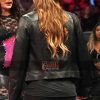Ladies Slim Fit Black Genuine Leather Biker Jacket- WWE Ronda Rousey