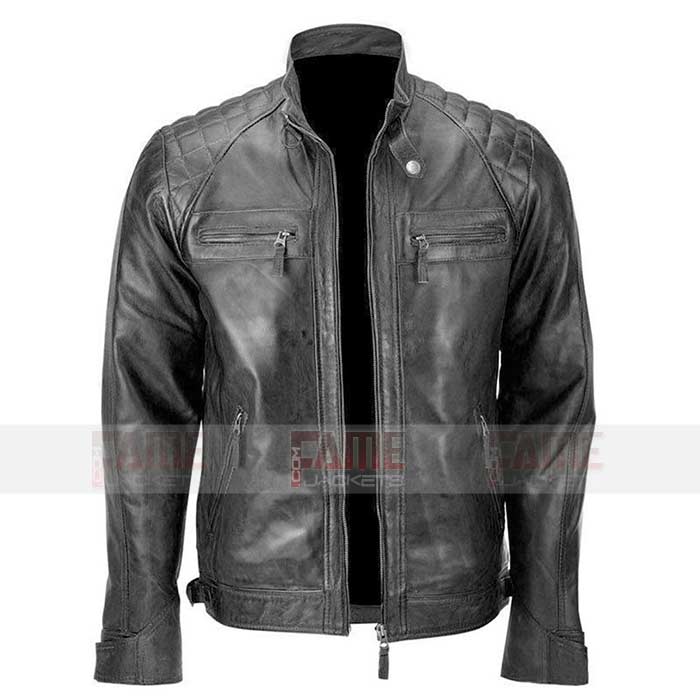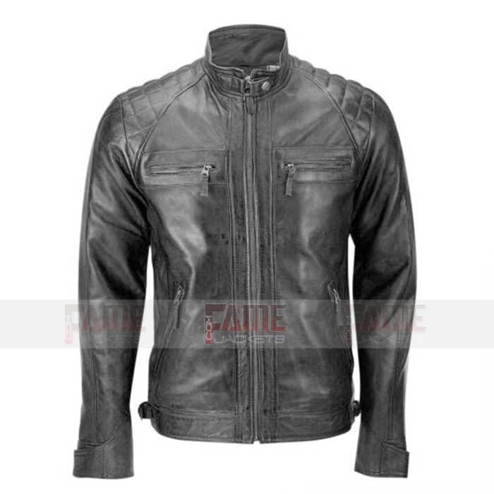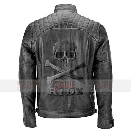 2 reviews for Mens Black Quilted Vintage Biker Leather Jacket With Skull