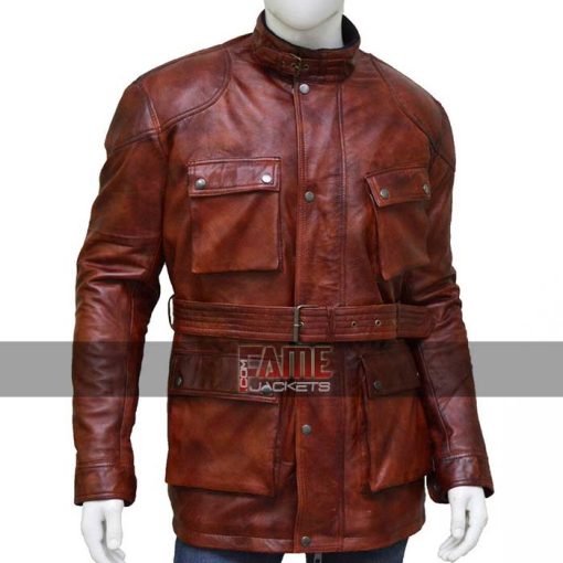 Men’s Brown Casual Vintage Genuine Leather Belted Long Style Jacket has a different and classy design. It comes with front metallic zipper and button closure, 4 big external pockets, 2 internal pockets, full length sleeves with zipper cuffs, functional waist belt, belted collar and viscose lining.