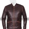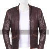 Men’s Brown Distressed Cowhide Leather Slim Fit Cafe Racer Jacket