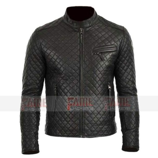 Mens Quilted Genuine Black Sheepskin Slim Fit Leather JacketÂ