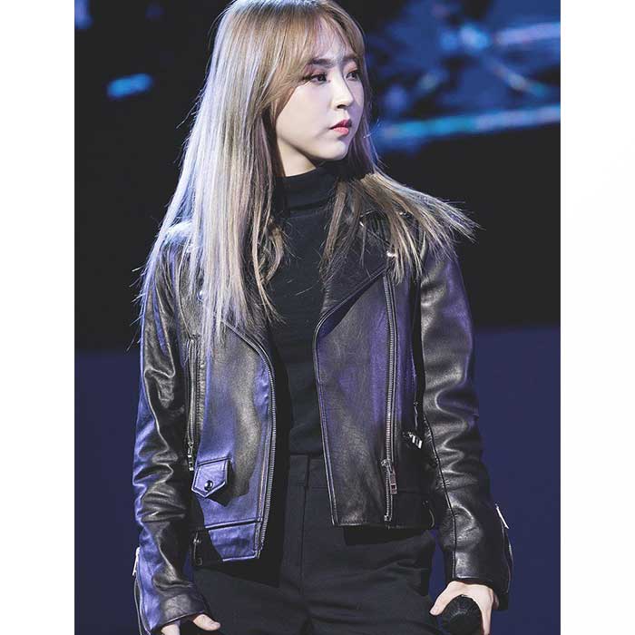 Moonbyul Mamamoo Black Leather Biker Jacket at Concert