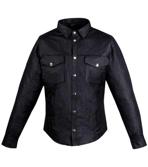 New Men’s Black Leather Buttoned Shirt Sale