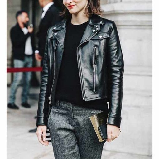 Women’s New Style Slim Fit Black Leather Biker Jacket
