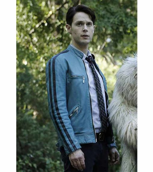 Samuel Barnett Men’s Blue Leather Retro Jacket