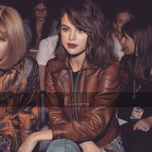 This casual brown waxed vintage style leather jacket is demanded by every women because of its style and design. It has worn by famous American singer and actress Selena Gomez. She is looking smart and cute in this outfit.