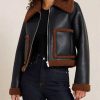 Shop this Liza Lapira as Melody Bayani Shearling Collar Black Leather Jacket From TV Series The Equalizer 2023 on Sale – Limited Time Offer with Free Delivery