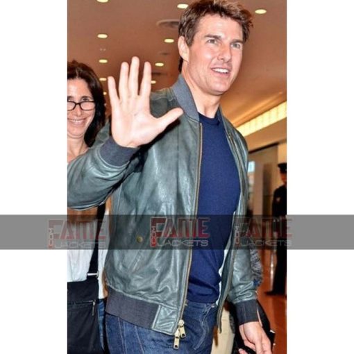 Tom Cruise Men’s Grey Leather Bomber Jacket