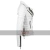Unisex Casual White Biker Slim Fit Genuine Leather Jacket